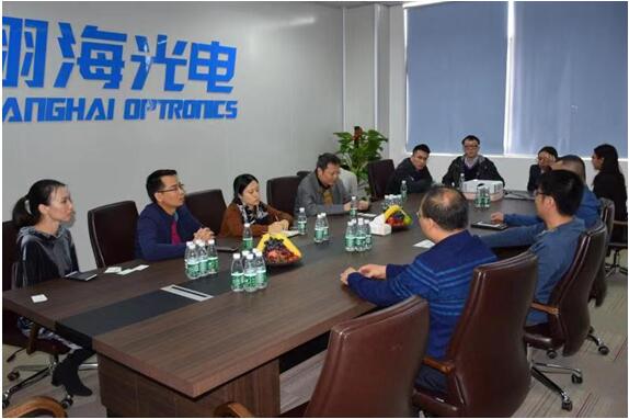 2018年11月22日上午佛山市南海区投资促进局副局长高瑞灵、陈剑勋等考察成员在佛山市南海区里水镇招商局周可局长的陪同下对翔海光电公司进行考察。